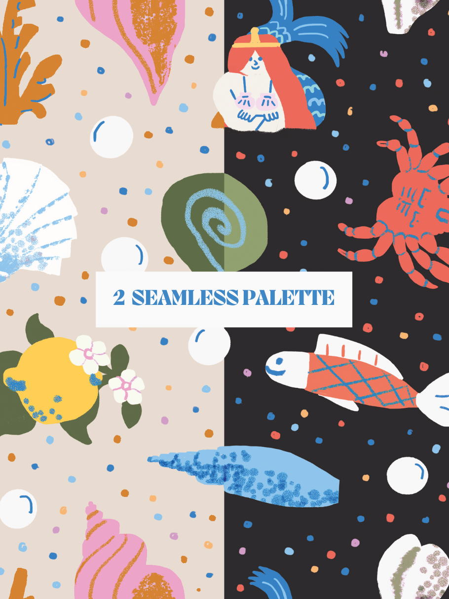 Shells and Mermaids seamless pattern